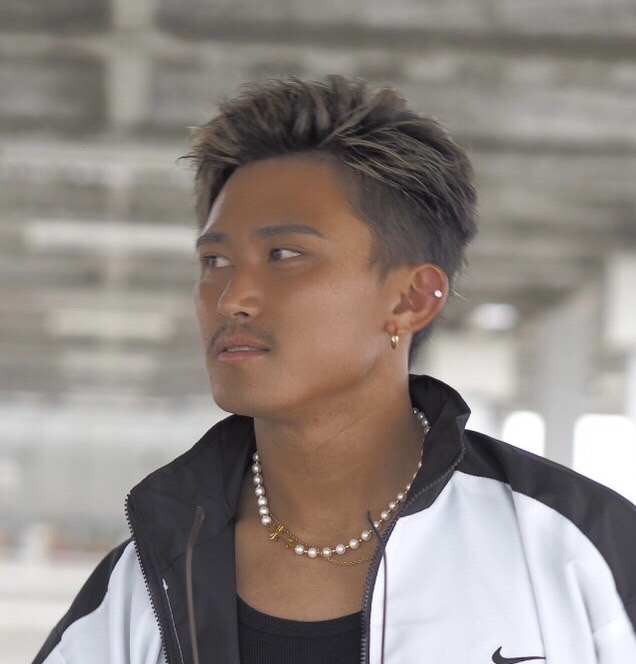 ピンマイクを持ち、独特なフォームでファッションを紹介。